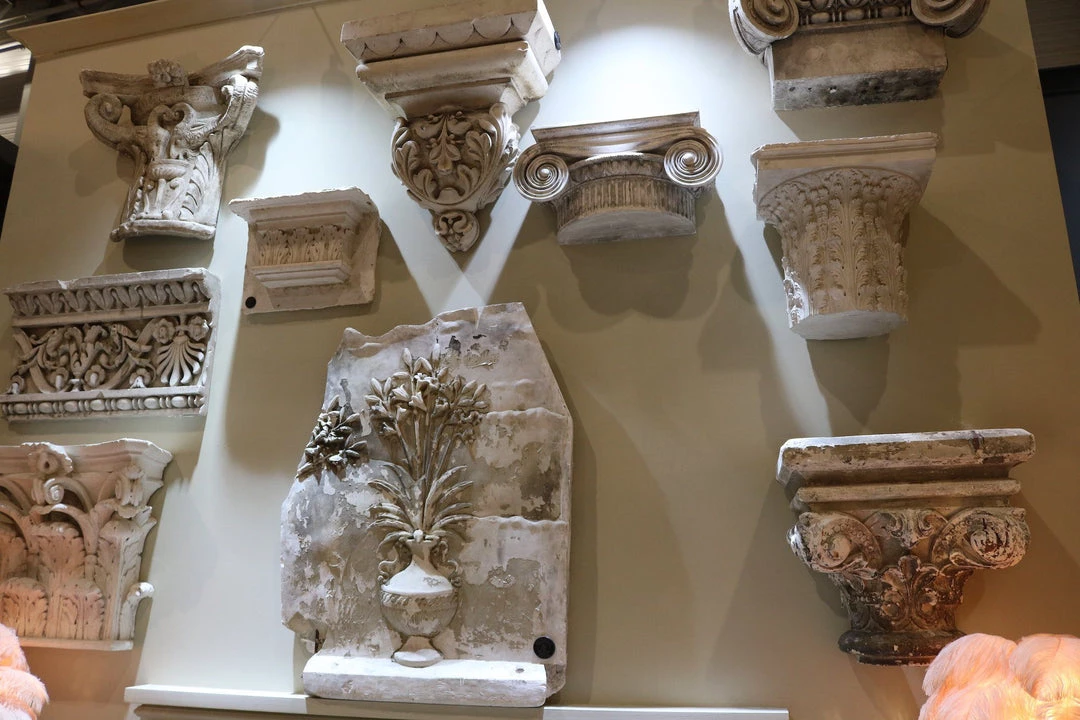 A detailed plaster capital, of recent manufacture by A Modern Grand Tour – bearing a metal seal inscribed ‘Aynhoe Park Limited Edition’. Beautiful on its own or as part of a collection.