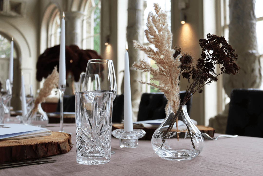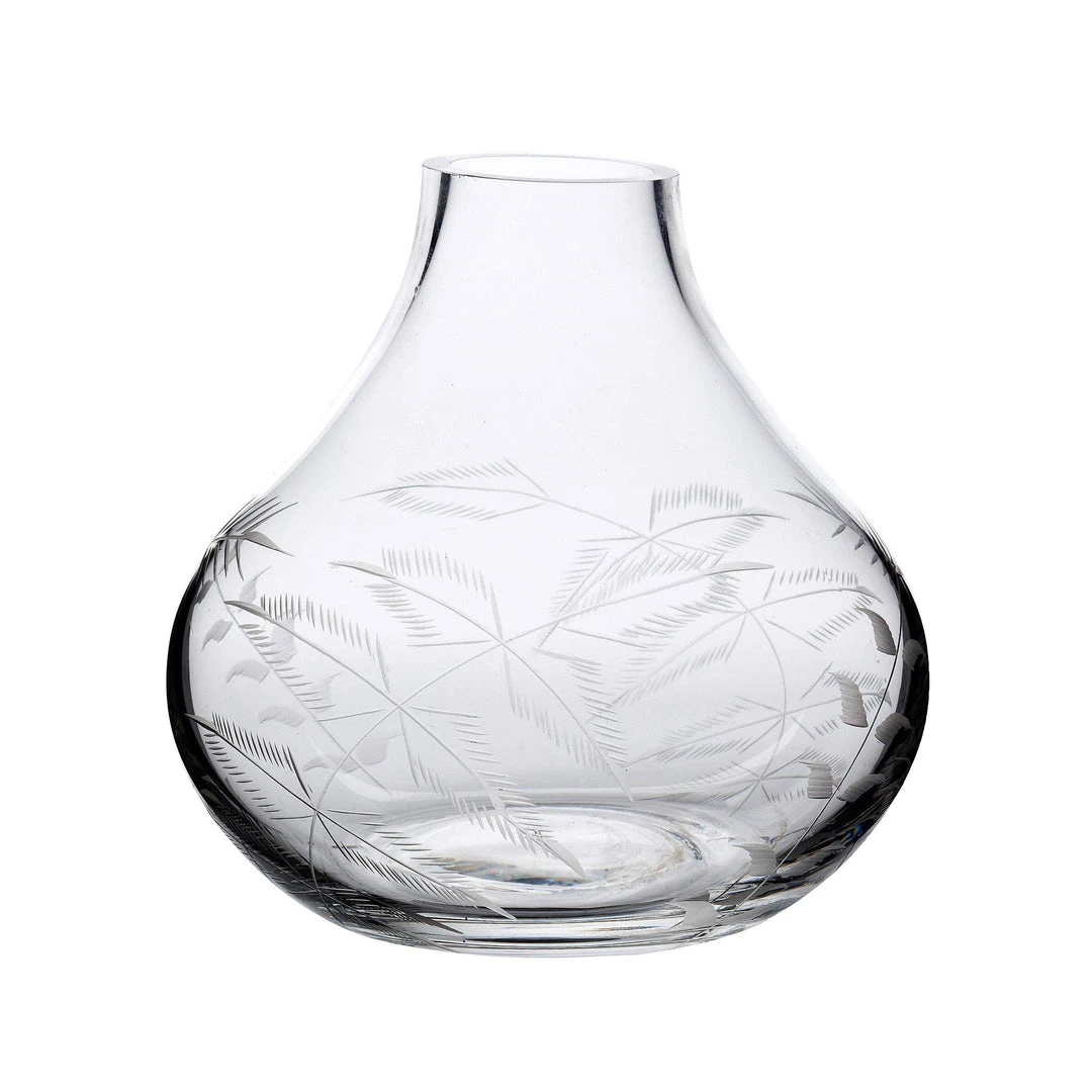 A small crystal vase with beautifully decorated fine engraved ferns. Each vase has been hand-blown, hand-decorated and made from fine crystal. Dishwasher safe.