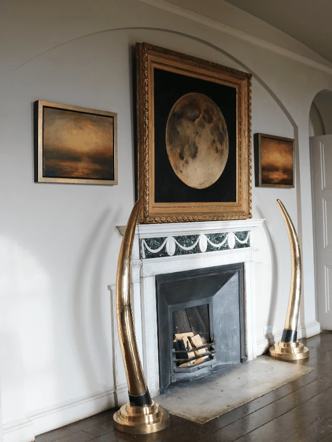 Mark Johnstons works are stimulated by nature, landscapes primitive power, energy and all its connotations of darkness and light. The importance of an improvised and intuitive process opens painting up to a primal purity, a spiritual and uniquely mysterious quality outside of time. In this oil painting which glows with warm light it may be interpreted as a sunset or sunrise. These paintings could be Oxfordshire or the south downs but the focus is about their beauty rather than their exact location as mark paints all parts of the country and intends for his paintings to remain mysterious and hold a sense of ambiguity.
