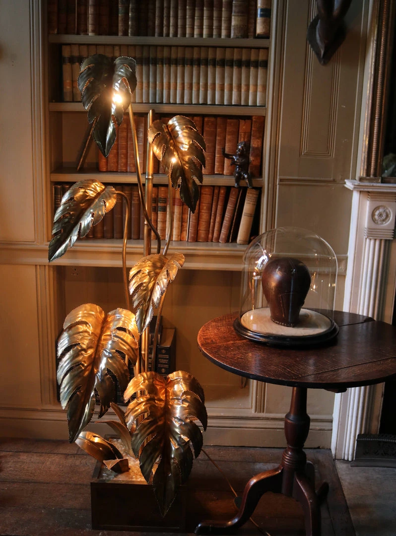 An Italian Mid Century Brass Leaf Floor Lamp. This six leaf design creates a beautiful accent lighting, through the spaces of the leaves. Place in the corner of your bedroom, to create the perfect evening ambience.