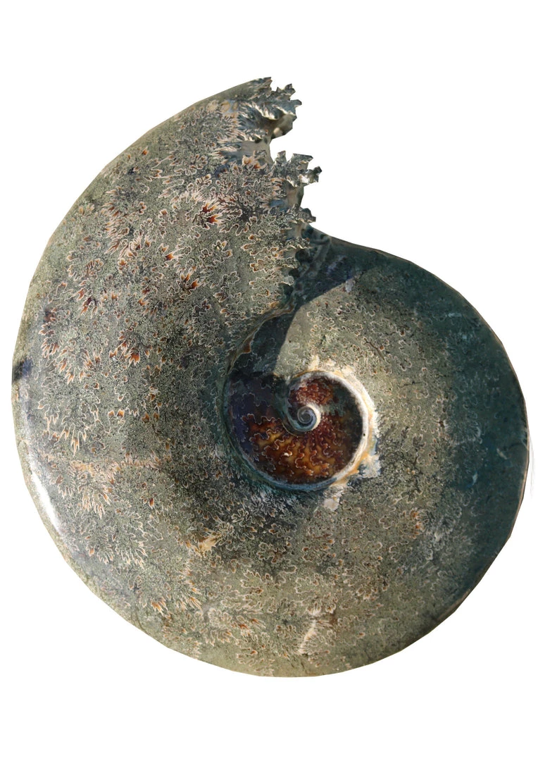 These are excellent, hand-picked examples of Cleoniceras Ammonites from Madagascar. Ammonites from this location are unusually well-preserved, and are often filled with calcite crystals making it possible to cut them in half and polish them. The details of the spiral chambers remain, and make each one a beautiful object in its own right.