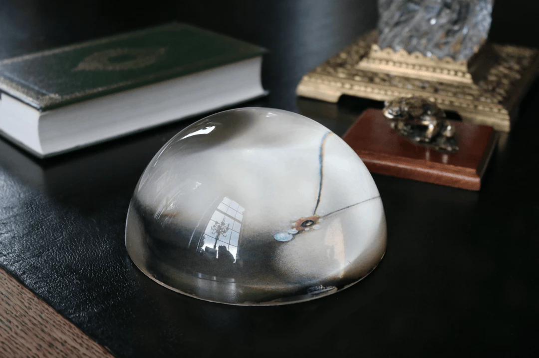 An elegant take on the classic desk accessory, the glass paper weight would make the perfect gift. Â Â Â