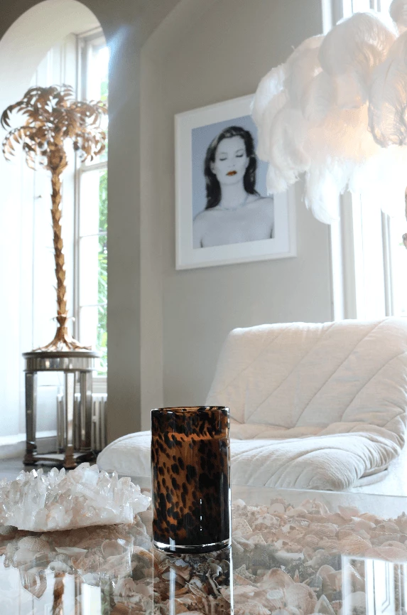 The exclusive, Large three-wick limited edition Aynhoe Park candle in Tortoiseshell. The earthy tones of a tortoiseshell pattern give an appealing, nature-inspired look to the glass and cast a warm golden glow over your table or mantle.