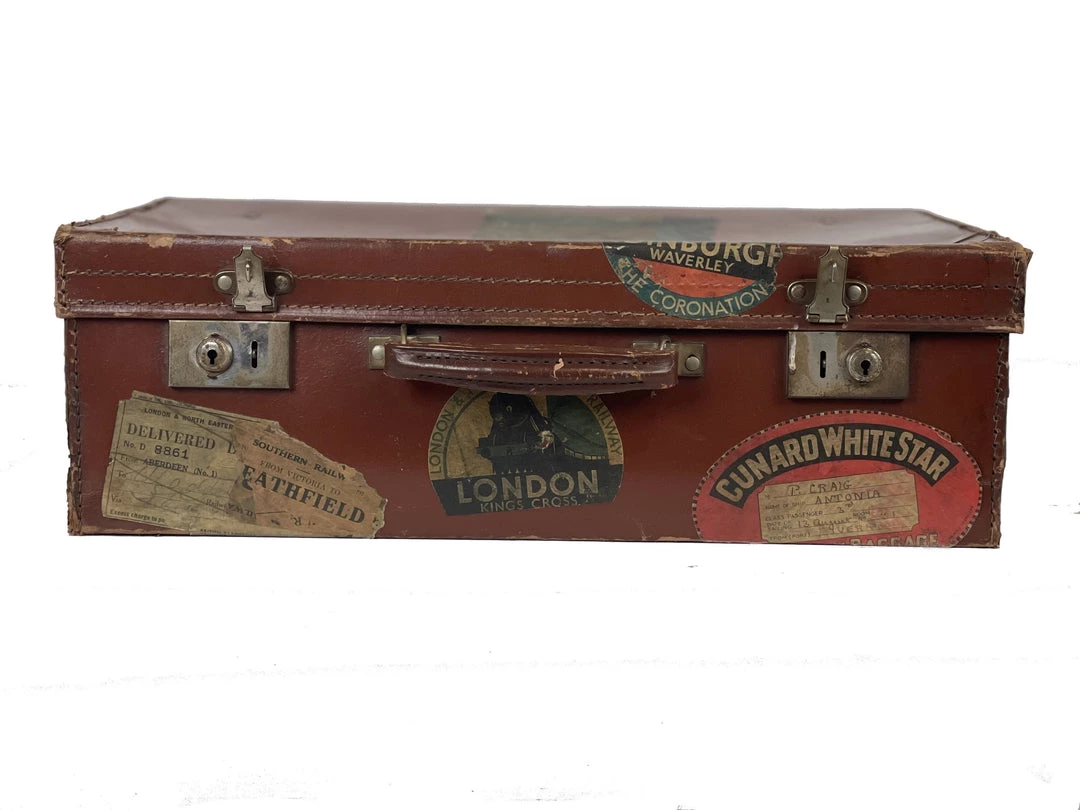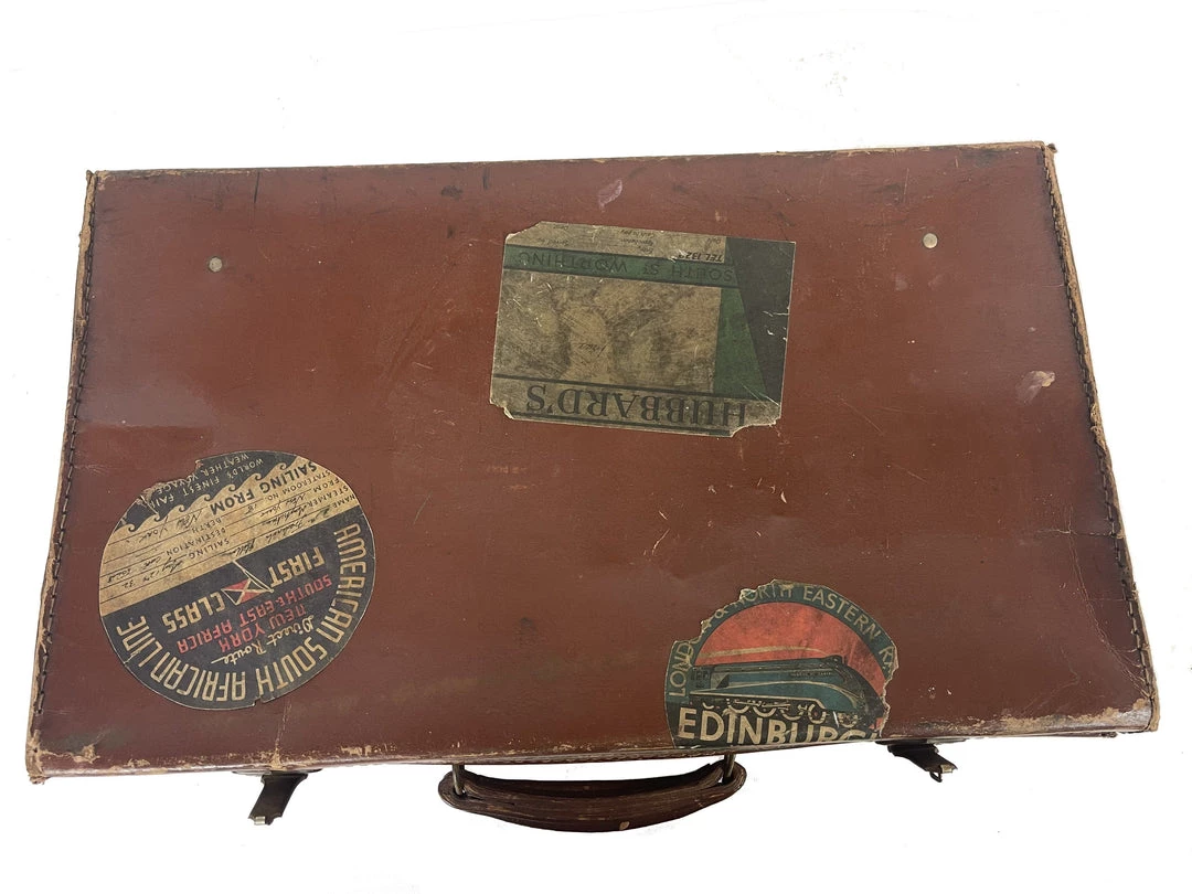 A Vintage Leather Trunk. The old travel stamps give this trunk extra personality and originality. Make a statement in your interior setting by creating a stack of these trunks.