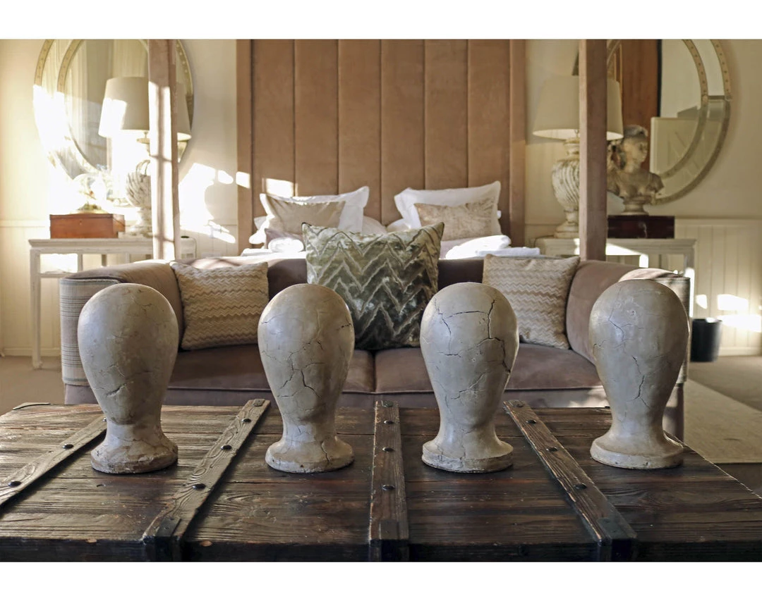 Rare and almost Sculptural these clay millners heads have a great patina of age constructed on wooden forms then covered in clay.
