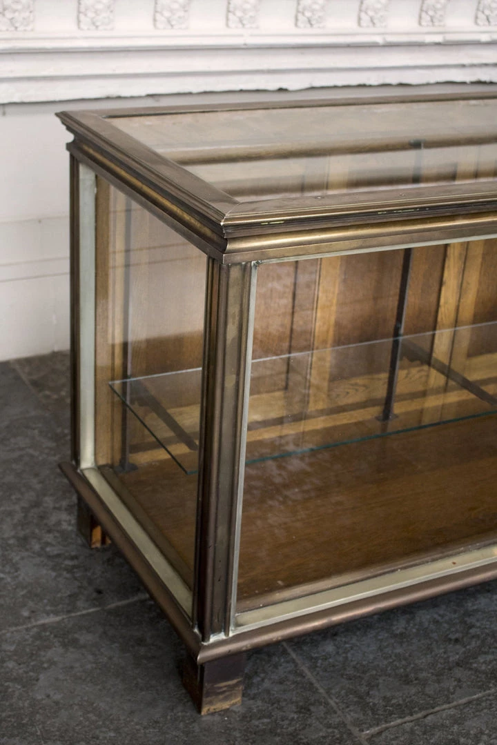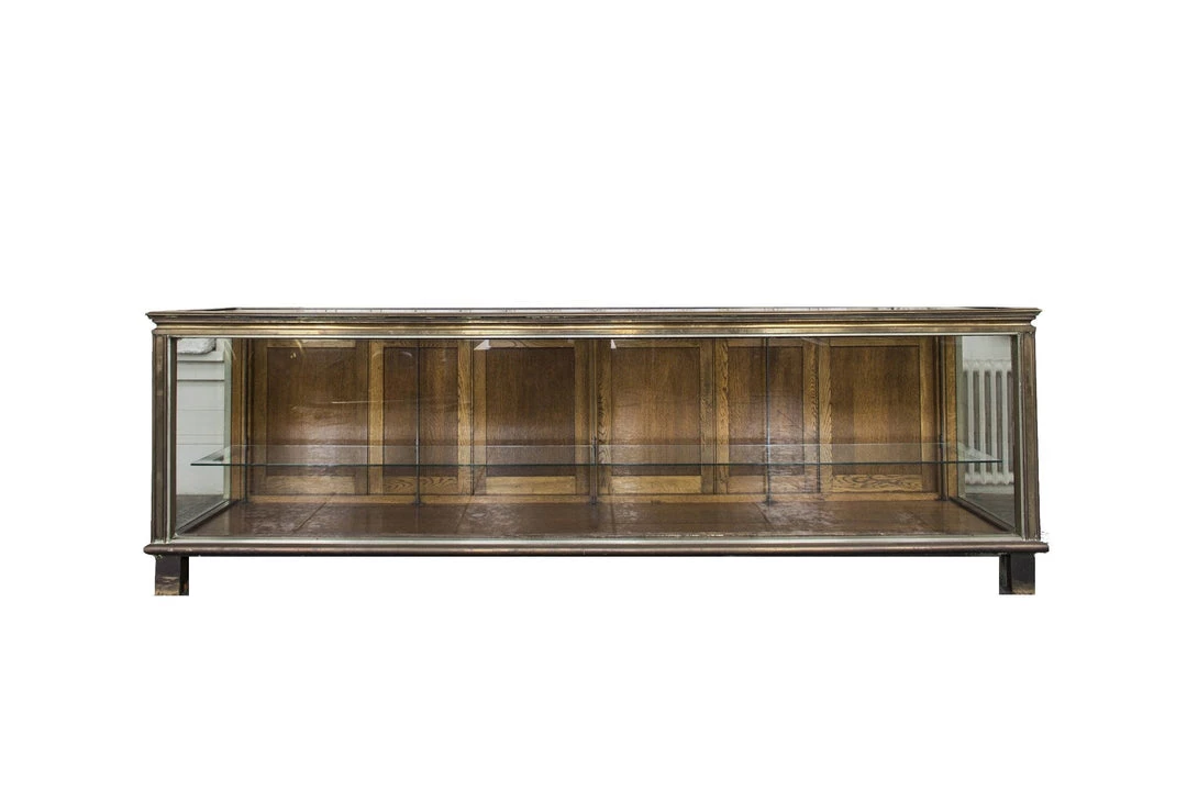 Bronze, Glass and Oak Late-19th Century Museum case of monumental proportion.